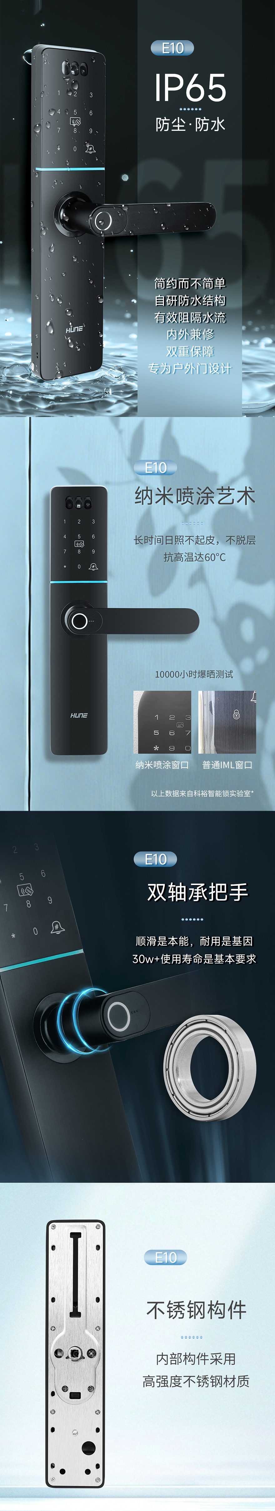 開鎖方式:人臉識別(選配)、指紋開鎖、密碼開鎖、卡片開鎖、鑰匙開鎖、手機開鎖、雙重認證、遙控開鎖(選配)