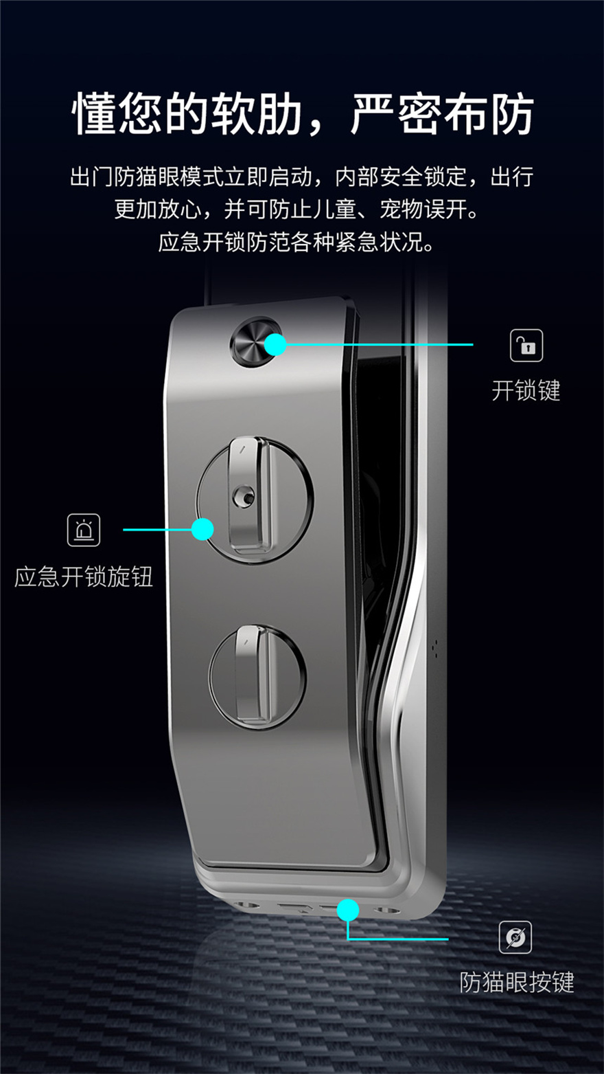 1、外觀簡約時尚,設(shè)計層次豐富,鈦合金人機工程學(xué)把手,使用舒適,20年質(zhì)感,不褪色,跑車流線型設(shè)計,動感十足,多種開鎖方式,可手機遠程操控,科技感十足